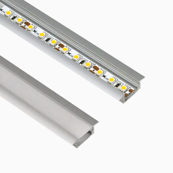 Speciellt utformad för att ge installationer med LED-strips en sömlös och professionell infällnad, skyddad mot damm och skador. Den låga höjden på 6mm gör profilen perfekt i en rad olika applikationer där installationsutrymmet är begränsat eller där en diskret belysningslösning önskas. Den infällda designen innebär att profilen monteras i ett urfräst spår som i sin tur ger en diskret finish. Perfekt för installationer såsom infällda trappor eller integrerade möbler