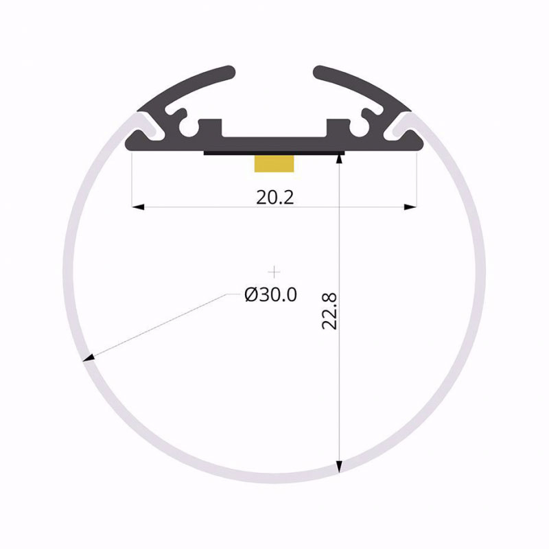 Rund LED-profil med en diameter på 30mm. Ger ett jämnt och fint ljus både med vit ljusfärg och RGB.