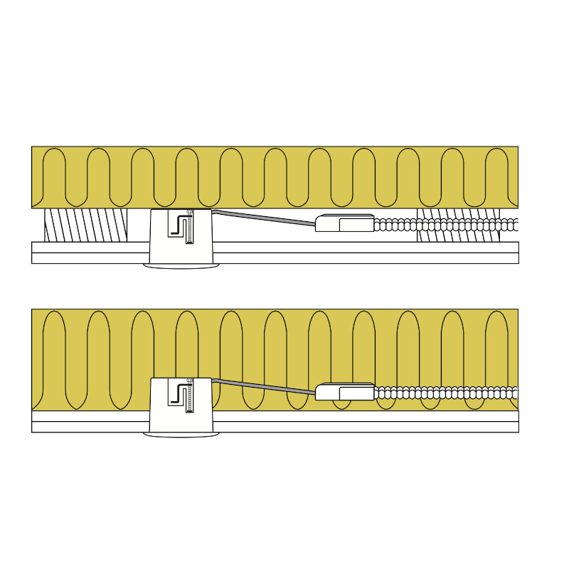 Riktbar LED downlight med låg inbyggnadshöjd. Fullständigt kapslad vilket gör att den till exempel kan sättas direkt i isolering. Höjden på downlighten är 63mm och håltagning är 75mm.