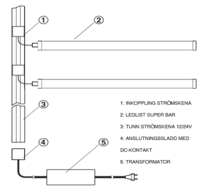 Kabel, 65cm lång, för att ansluta Ledlist Super till strömskena. Strömskenan är i sin tur ansluten till transformator.
