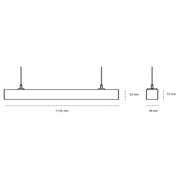 Denna armatur i serien Kloss är 1,13m. Monteras dikt an tak eller med vajerkit för pendlat montage. Kan vidarekopplas med fler armaturer genom att lägga till vidarekopplingskit. Då är armaturen genomkopplingsbar via snabbkontakter.