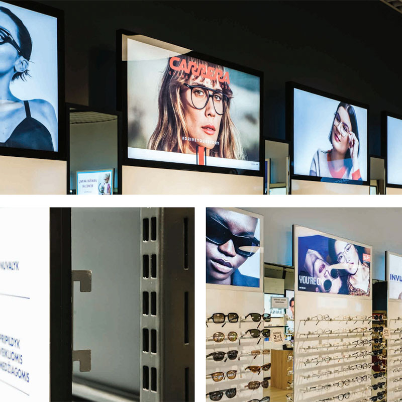 Krok till ljustavlor som gör att ljustavlan enkelt kan monteras i standard butiksinredning. Säljes i 2-pack.
