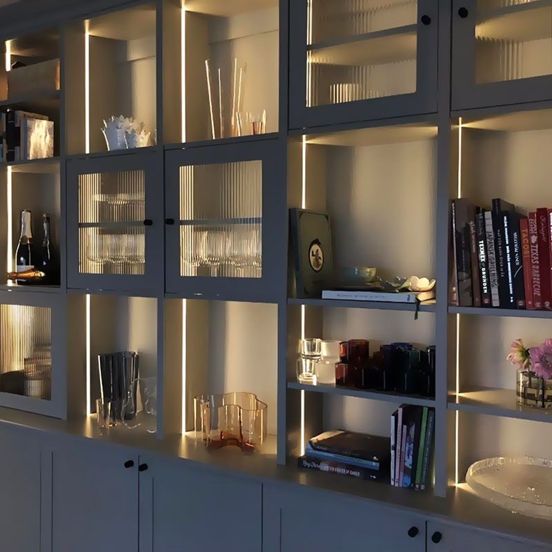 Vi levererar skräddarsydd LED-belysning som byggs in i inredning och tak i offentliga miljöer som butik, restaurang, kontor, hotell & mässa.
