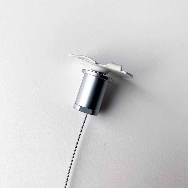 Monteringsclipset passar i standard innertak med A-kant. På monteringsbeslaget sitter en M6 gänga i vilken vårt standard vajerkit passar. Topphatten från vajerkitten kan enkelt skruvas på gängan.