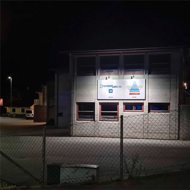 Placera armaturerna med 1,5m avstånd för bra jämnt ljus längs hela skylten.