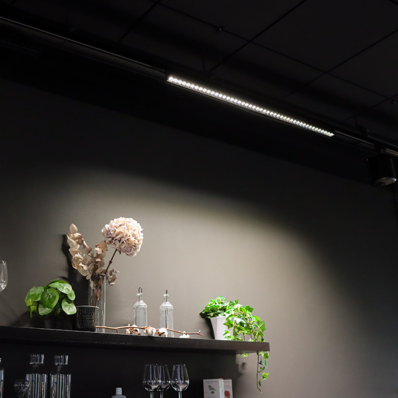 Diskret armatur i skena som ger ett jämnt och avbländat allmänljus