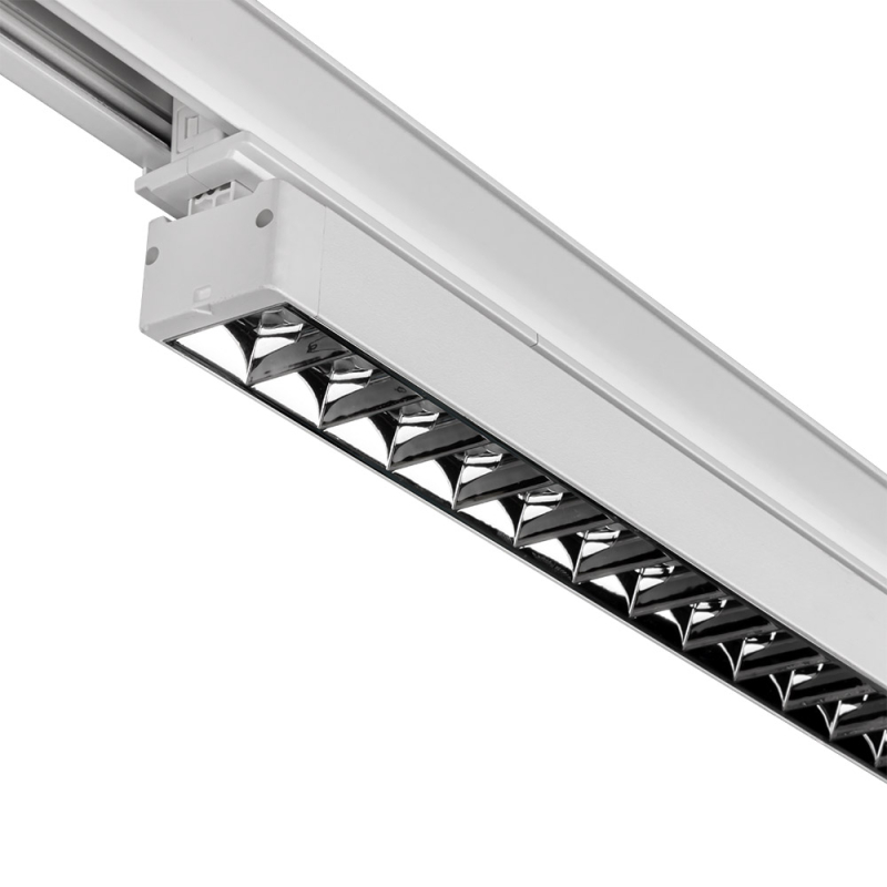 Armaturen har samma bredd som en vanlig 3-fas skena och smälter in i skenan vilket ger ett stilrent och modernt uttryck. Genom att kombinera Trio skenarmatur med spotlights i skenan får man en flexibel ljusinstallation med bra avbländat allmänljus från Trio och riktbart ljus från spotlights.