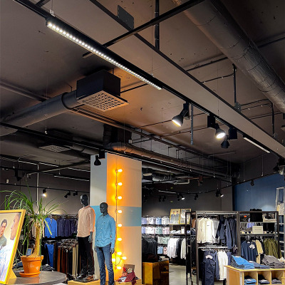 Vi levererar skräddarsydd LED-belysning som byggs in i inredning och tak i offentliga miljöer som butik, restaurang, kontor, hotell & mässa.