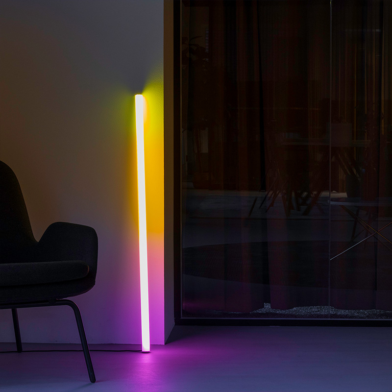 Oavsett om Trollstav är monterad på väggen eller placerad på golvet är armaturen ett mångsidigt designelement som förvandlar varje rum till en spännande miljö. Eller välj att köpa till ett vajerkit för nedpendling över olika ytor. Fördjupa dig i färgupplevelsen och säg adjö till tråkiga utrymmen och hej till en värld av oändliga möjligheter.