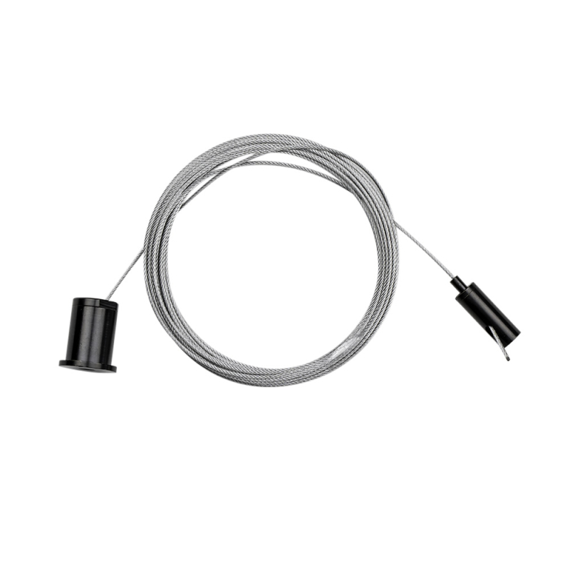 Svart vajer kit för upphängning av nedpendlade armaturer och skenor.
